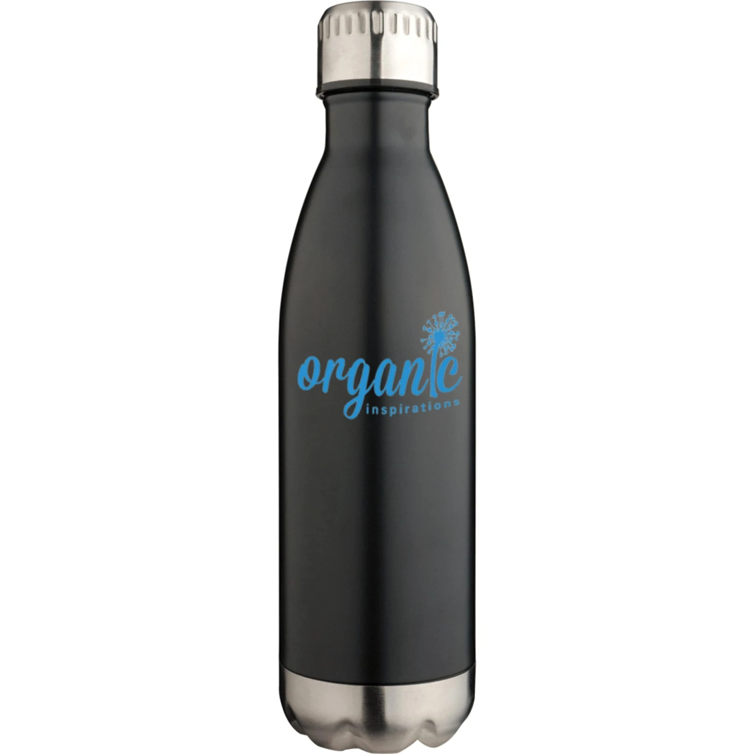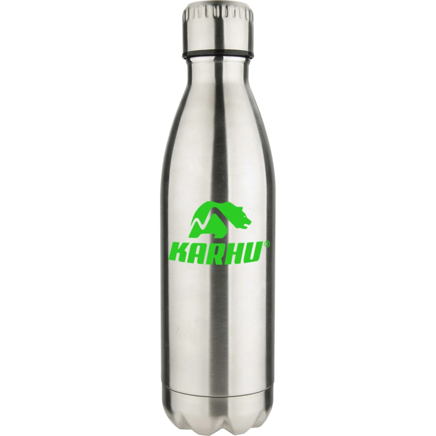 Keep your drinks at the perfect temperature with this handy, 17oz. insulated cola bottle. Double wall stainless steel with vacuum insulation. Keeps drinks hot for 12 hours or cold for 48 hours. Stainless steel outer, stainless steel inner.