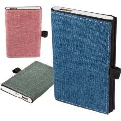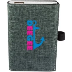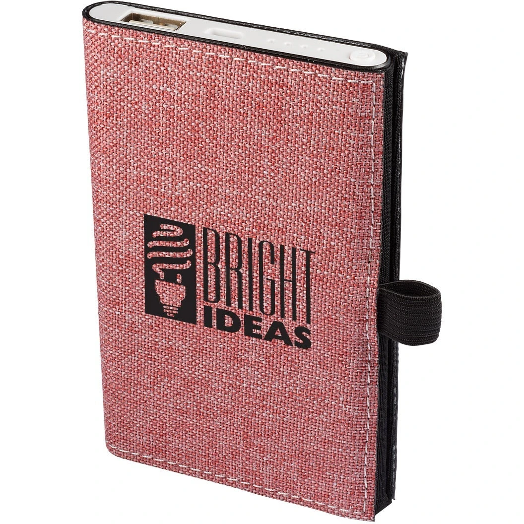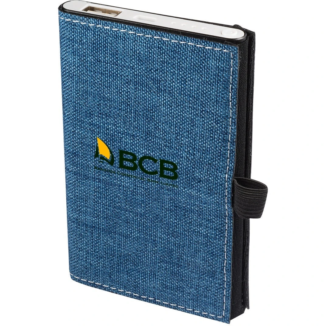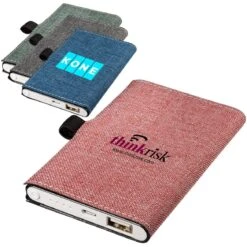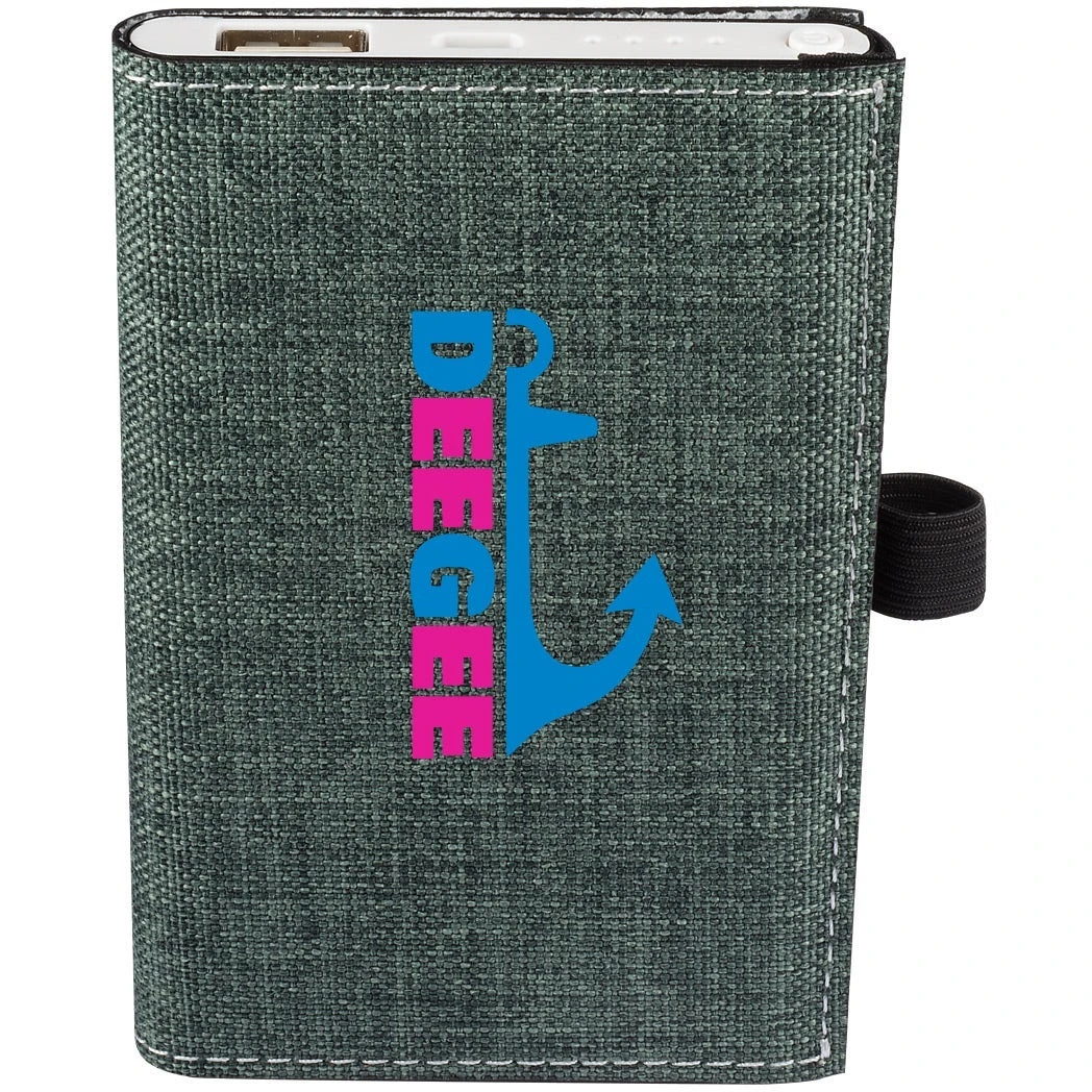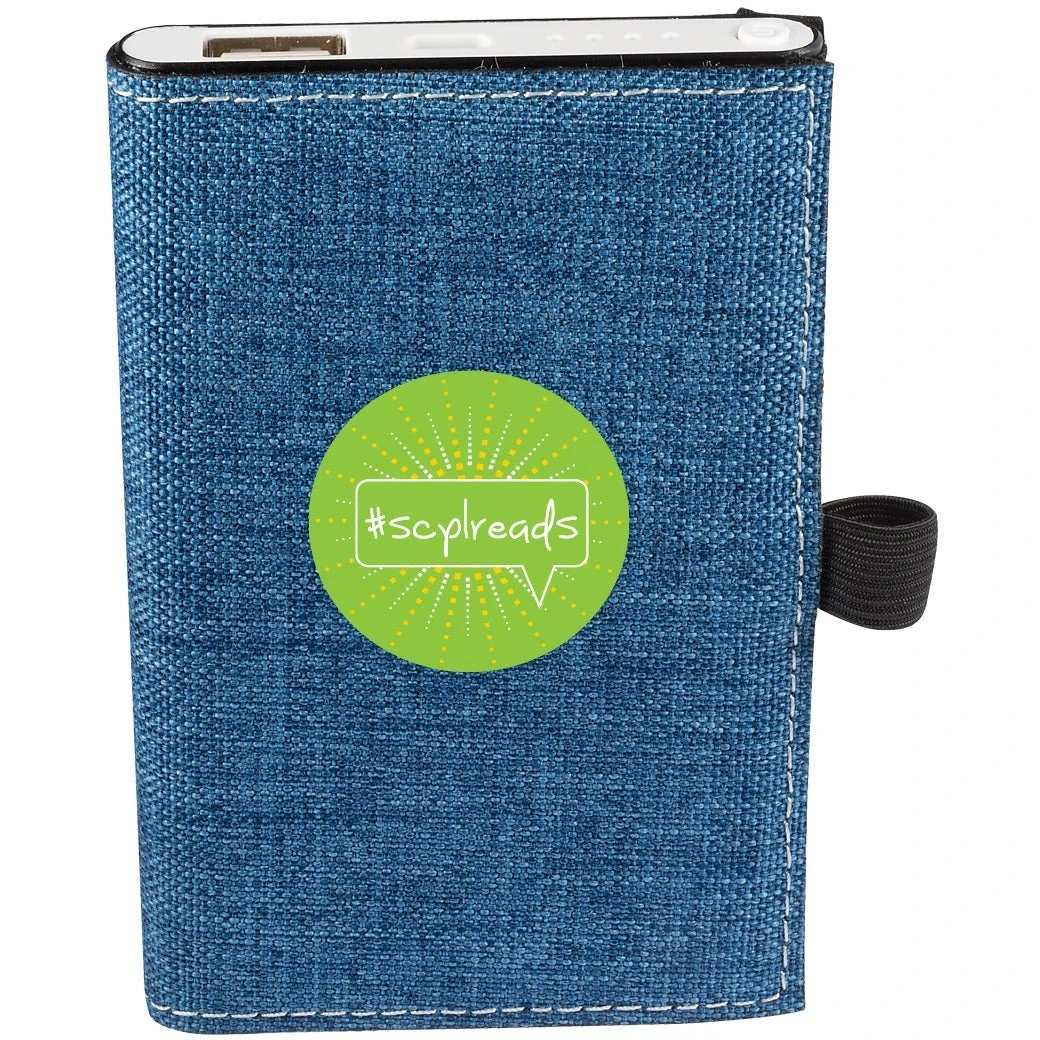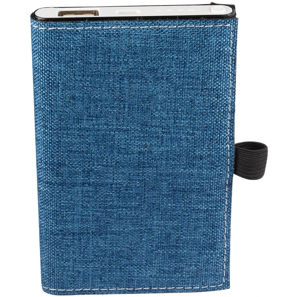 Slim aluminum power bank emergency battery charger with snow canvas accent wrap body. Power/Technology: input DC 5V/1000mA; output DC 5V/2100 mA. Rechargeable polymer battery. Capacity: 4000mAh. Features LED indicator light. Charge time differs by device. Must charge power bank prior to first use. Includes USB charging cable. UL certified.