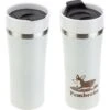 Stainless steel inner and outer. Double wall construction for insulation of hot or cold liquids. Screw on, spill-resistant lid. Push lid to drink and push again to close. Wide mouth opening. Easy carry handle. Meets FDA requirements. BPA free. Hand wash recommended.