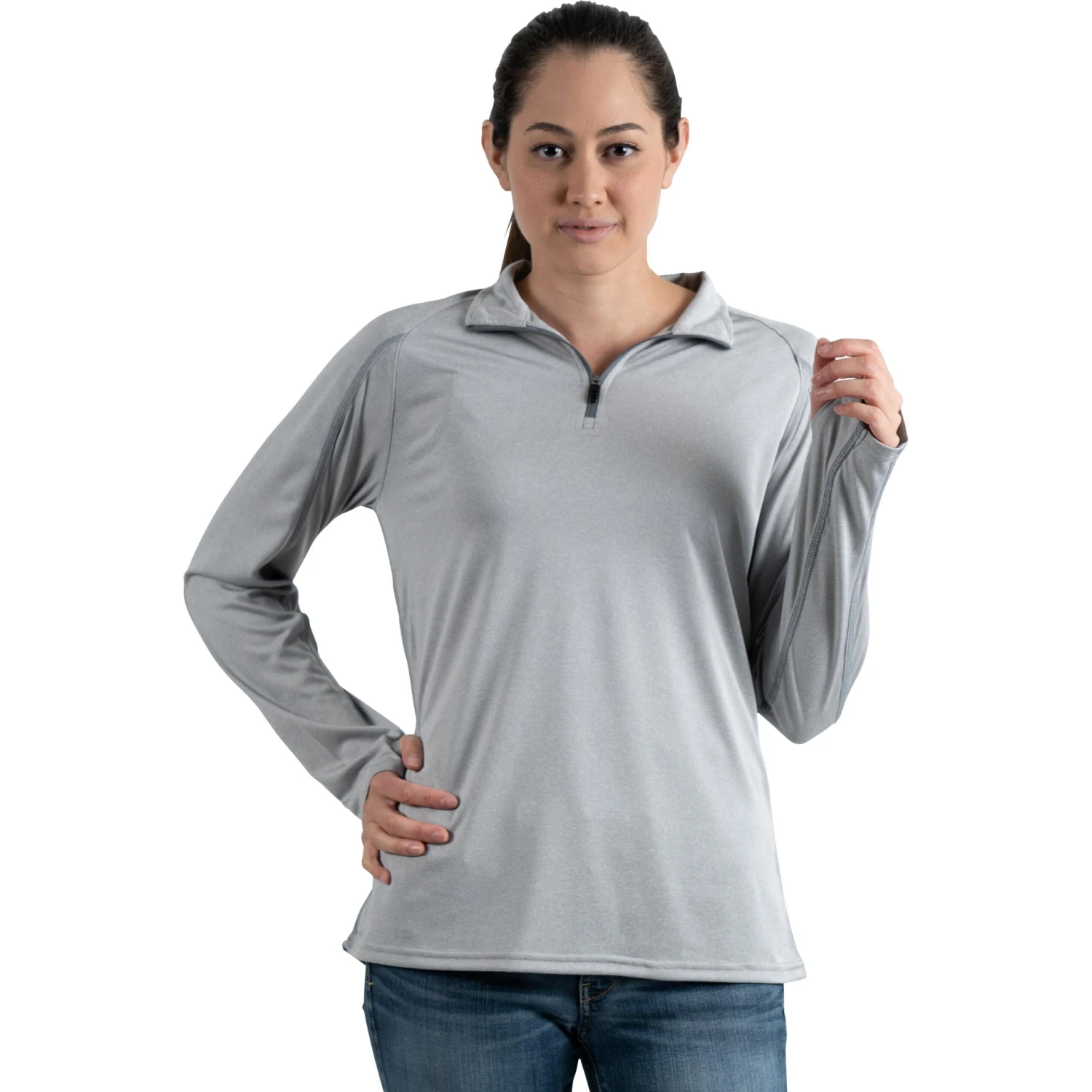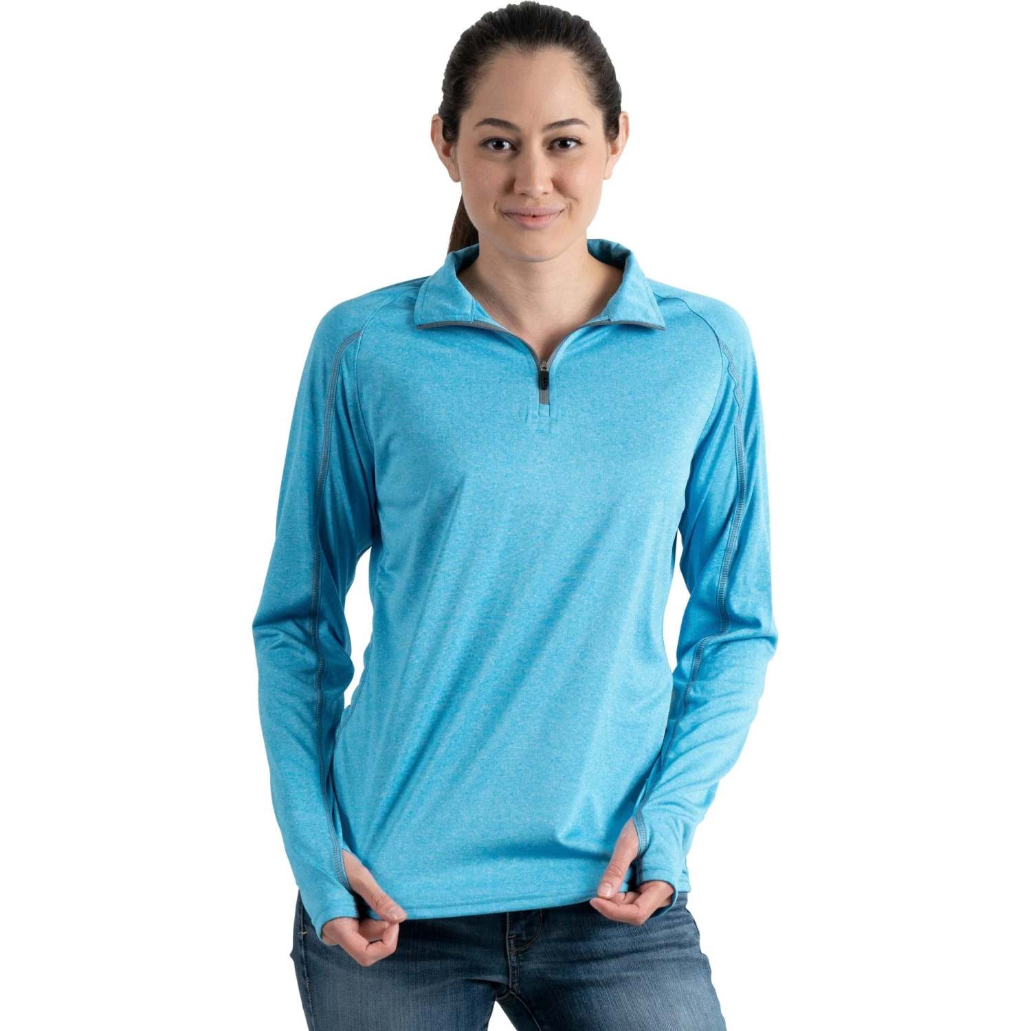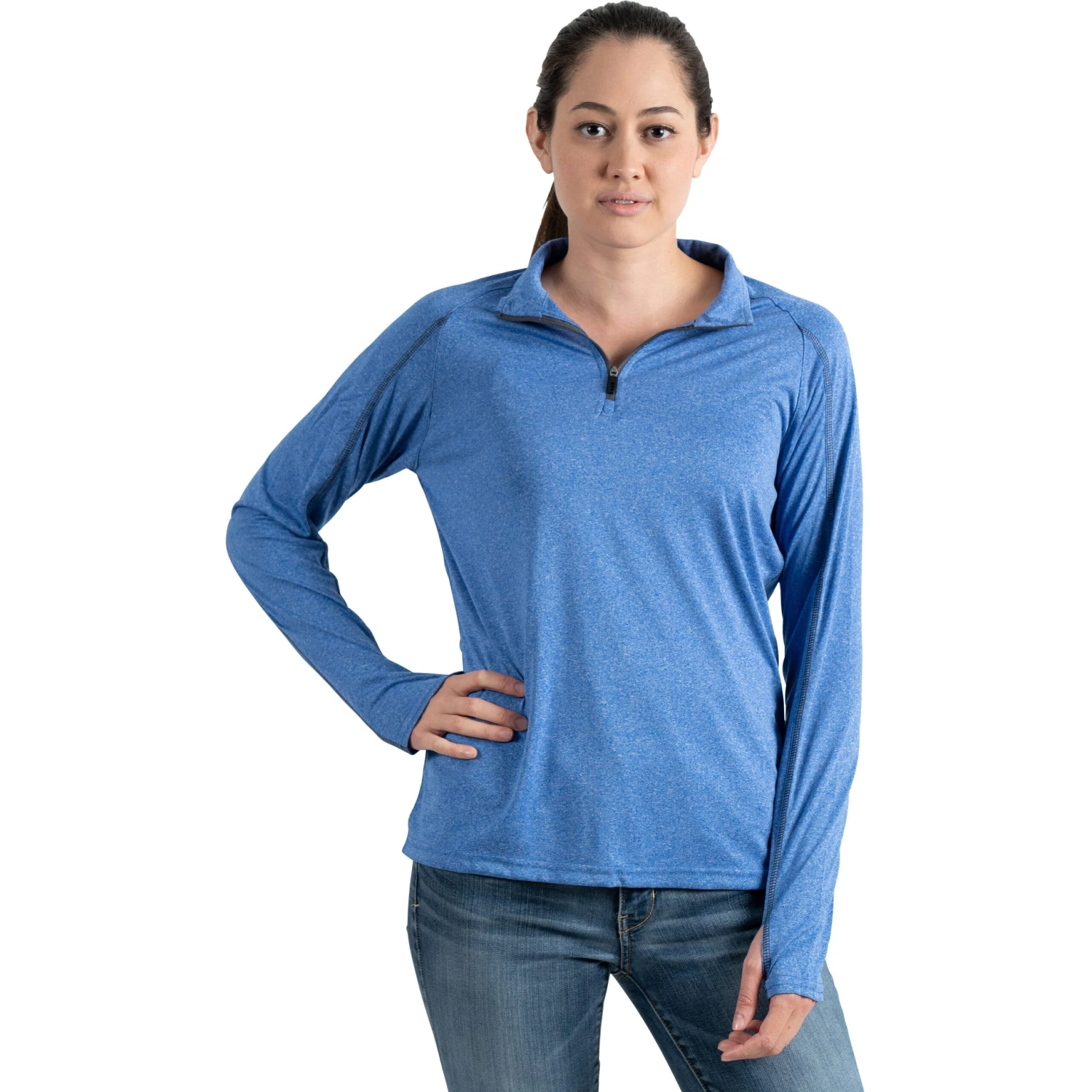 The Taza Knit Quarter Zip Sweatshirt by TRIMARK (Women’s)* from Quality Logo Products® features: