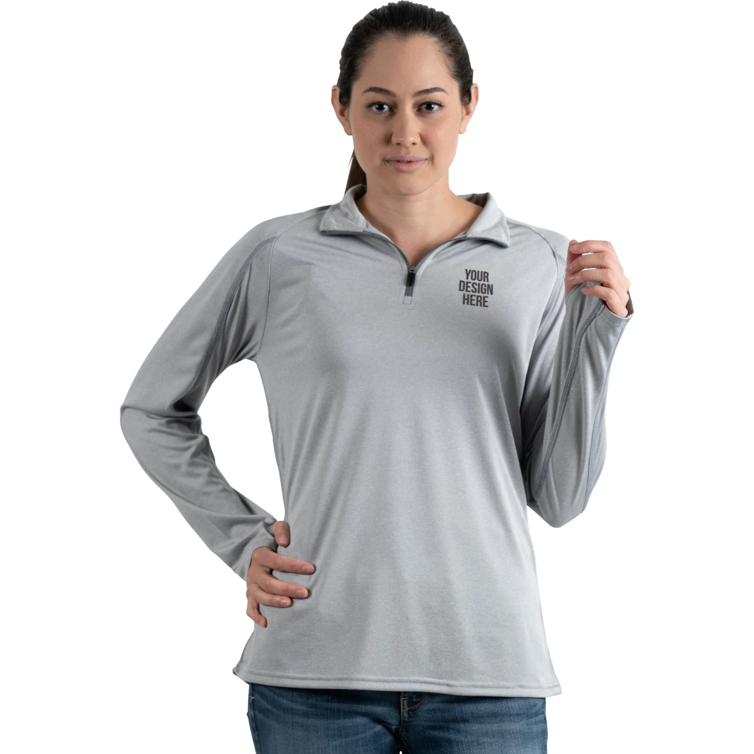 The Taza Knit Quarter Zip Sweatshirt by TRIMARK (Women’s) makes a wonderful wintertime company gift or is perfect for anyone else in your business circle (clients, vendors, co-workers). Order your custom sweatshirt today!