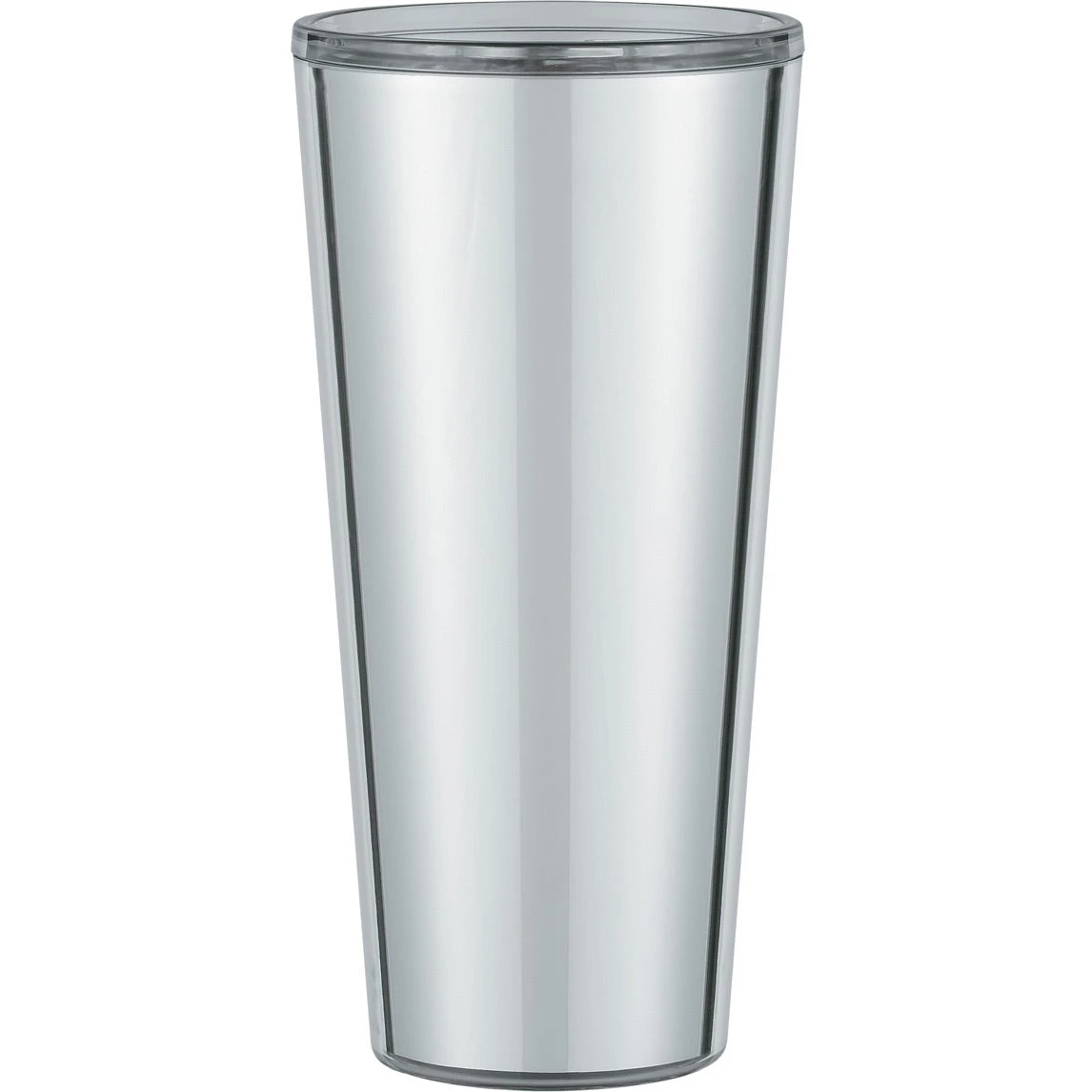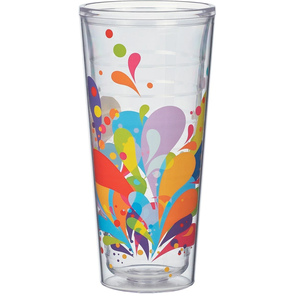 Ringed inner wall. 22 Oz. double wall tumbler. Durable Tritan material. BPA free. Meets FDA requirements. Proposition 65 compliant. Does not retain odor or taste. Top rack dishwasher safe. Decoration is inserted between the clear double walls of the tumbler then ultrasonically sealed to provide double wall insulation. Freezer safe. Made in the USA. Reduces condensation eliminating the need for coasters. Keeps cold drinks colder longer and hot drinks hotter longer. Optional lid and matching straw. Impact and shatter resistant. Double wall construction for insulation of hot or cold liquids.