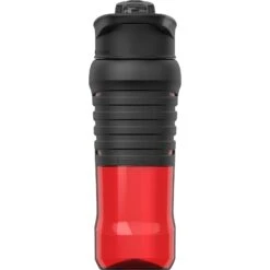 24 oz. (710 mL) sports bottle made of durable Tritan plastic with duo function polypropylene plastic lid with Dacron strap. Duo function lid unscrews in 2 spots – lower seal provides wide opening to insert ice cubes or sliced fruit to add some flavor to your water, upper seal is designed for standard use on the go. Designed for use with cool beverages only. Hand-wash only. Do not microwave or place in freezer.