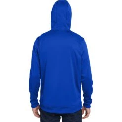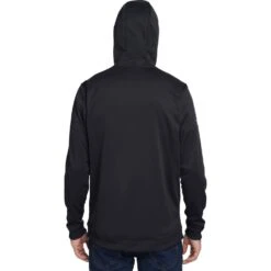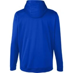100% polyester. UA Storm technology repels water without sacrificing breathability. Armour Fleece is light, breathable and stretchy for warmth that still lets you move. Soft inner layer traps heat to keep you warm and comfortable. Bungee adjust hood. Front pouch pocket. Ribbed cuffs and bottom hem. Loose, fuller cut for complete comfort.