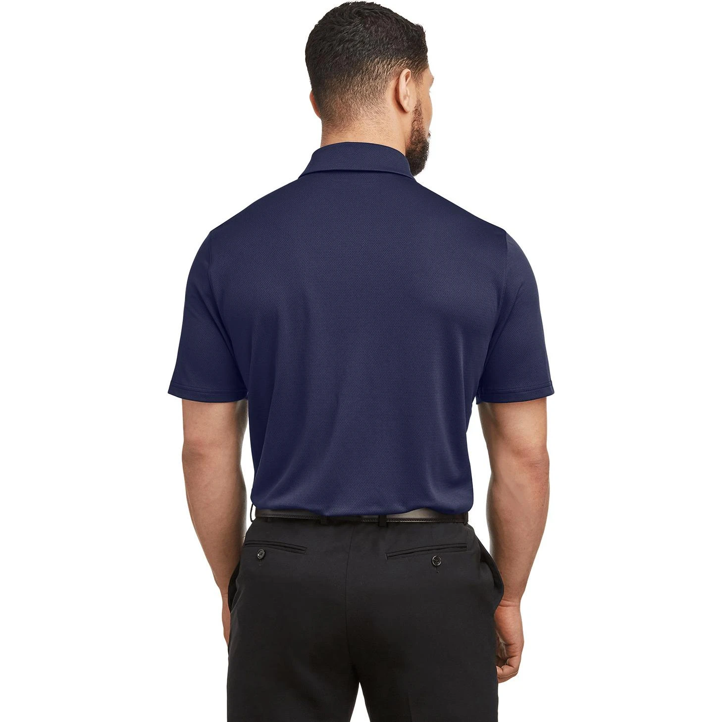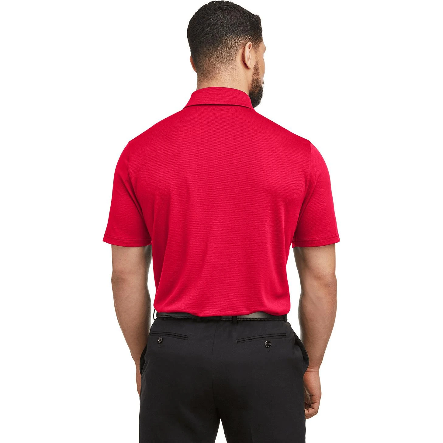 100% polyester. Material wicks sweat and dries quickly. Textured fabric that’s soft, light and breathable. Anti-odor technology prevents the growth of odor-causing microbes. Material wicks sweat and dries fast. 3-button placket. Self-fabric collar.