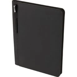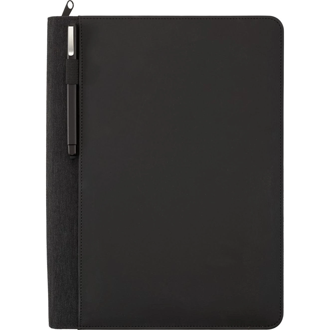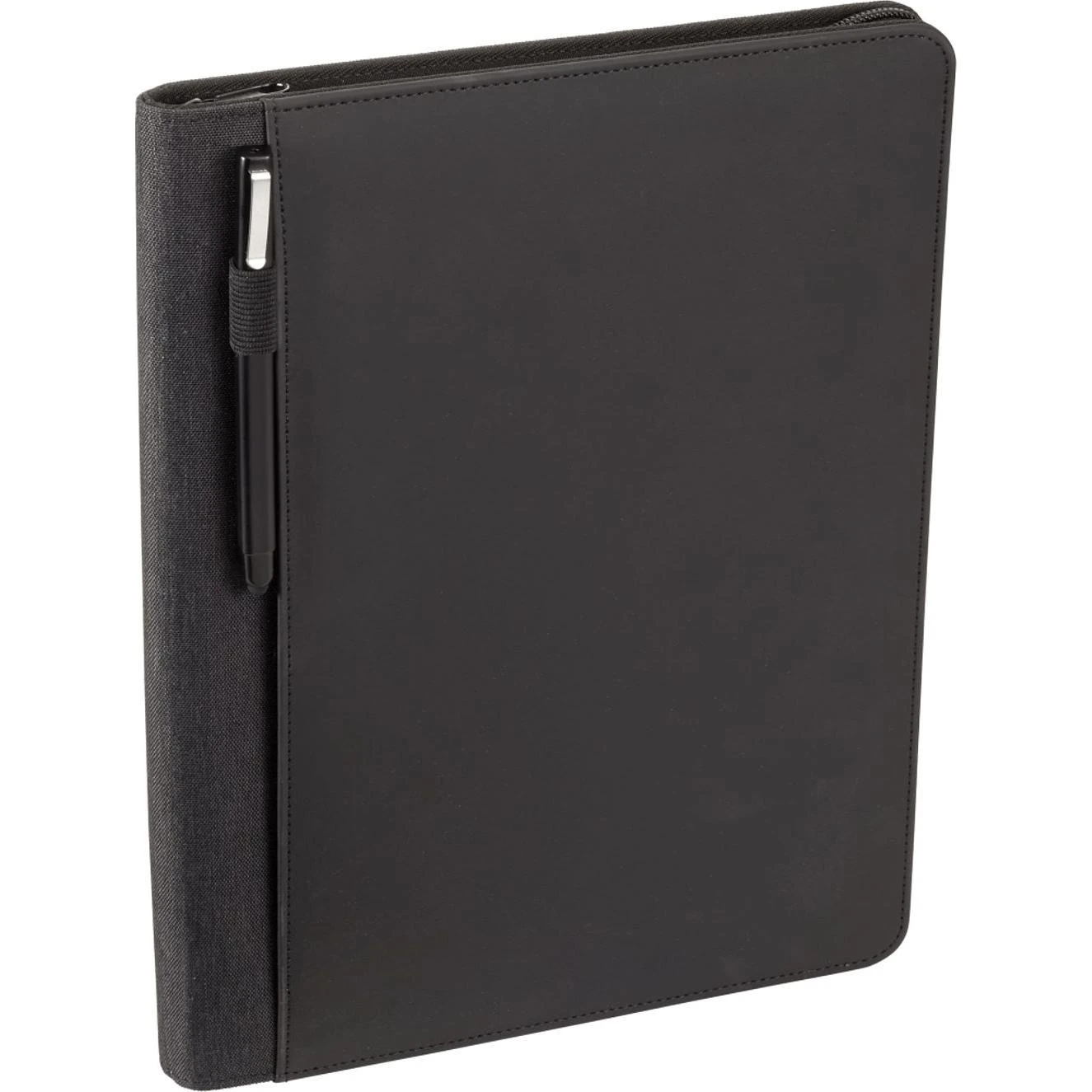 The Vienna Heathered Zippered Padfolio features a smooth polyurethane front cover with a heathered, textured back cover. Its convenient design offers a front pocket with an integrated elastic pen loop, making it easy to keep your writing instrument in close reach. Additional features of this zippered Italian UltraHyde padfolio include a plastic smartphone pocket, multiple business card slots, a stretchy elastic cord for securing extra items, and an interior document pocket.