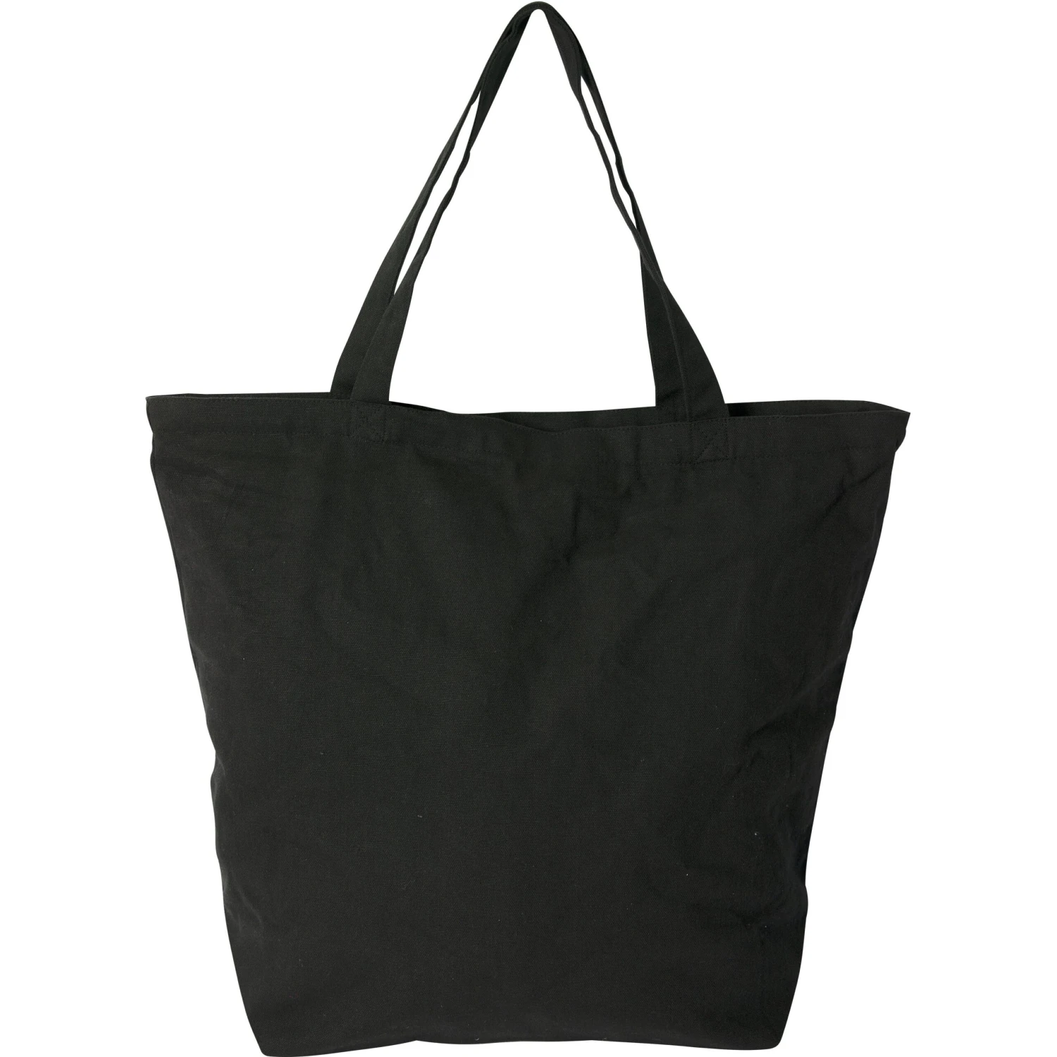 12 oz. cotton. Two extra-long 28″ cross-stitched cotton webbed shoulder strap handles. Top matching colored zipper closure.