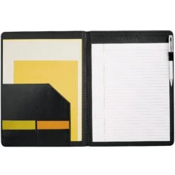 These classic padfolios feature an 8.5 by 11 inch lined notepad on one side, and a document pocket and business card pockets to hold everything you’ll need for your next meeting, conference or networking event.