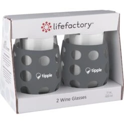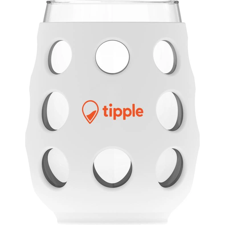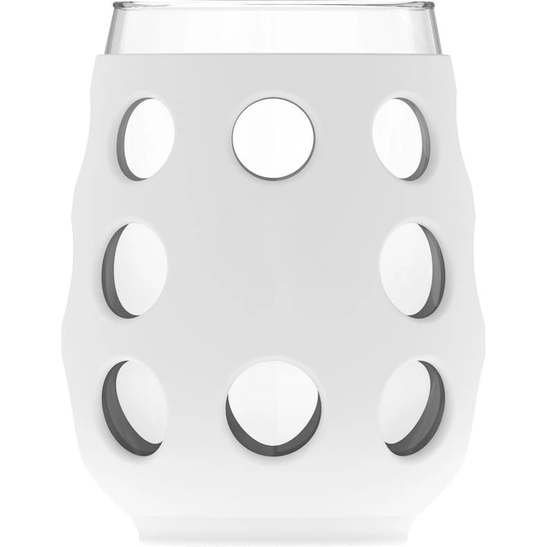 Stemless glasses are great for entertaining and durable for everyday use. Silicone sleeves provide non-slip grip and help protect glass.