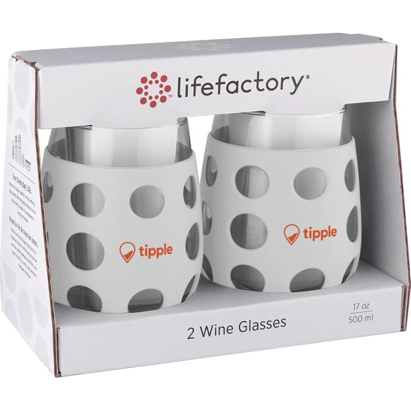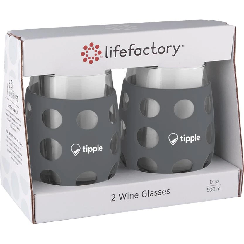 The 17 oz. (500 mL) stemless wine glass is for the more generous pours. So you can go big, or fill part-way and swirl with a little extra zeal. The silicone sleeves are colorful, dishwasher safe, and allow you to keep a good grip.
