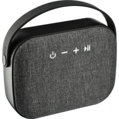 Enjoy exceptional sound of the Woven Fabric Bluetooth Speaker. Be on trend with the knitted fabric cloth. The speaker has a soft touch but packs a punch with a 5 watt speaker driver. The built-in music control and microphone allows you to control the music and conference call from any location without touching your phone. Bluetooth working range is 10 meters. Includes Micro USB to USB charging cable and 3.5mm audio cable. Playback time at max volume is 6 hours and charging time is up to 4 hours. Note: phone not included.